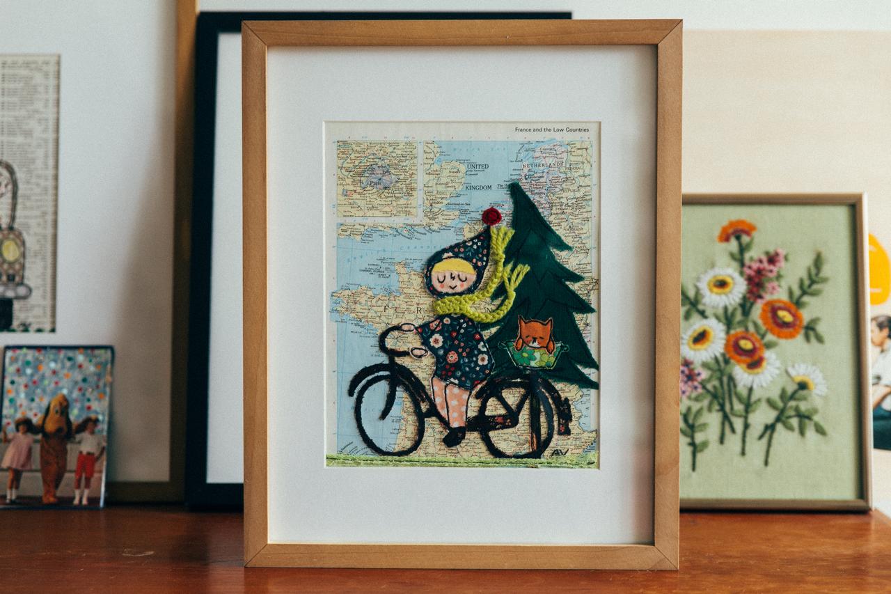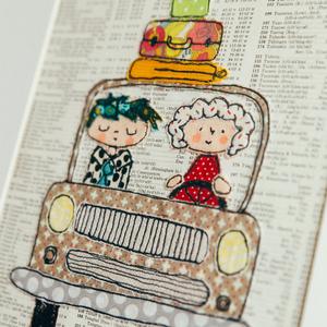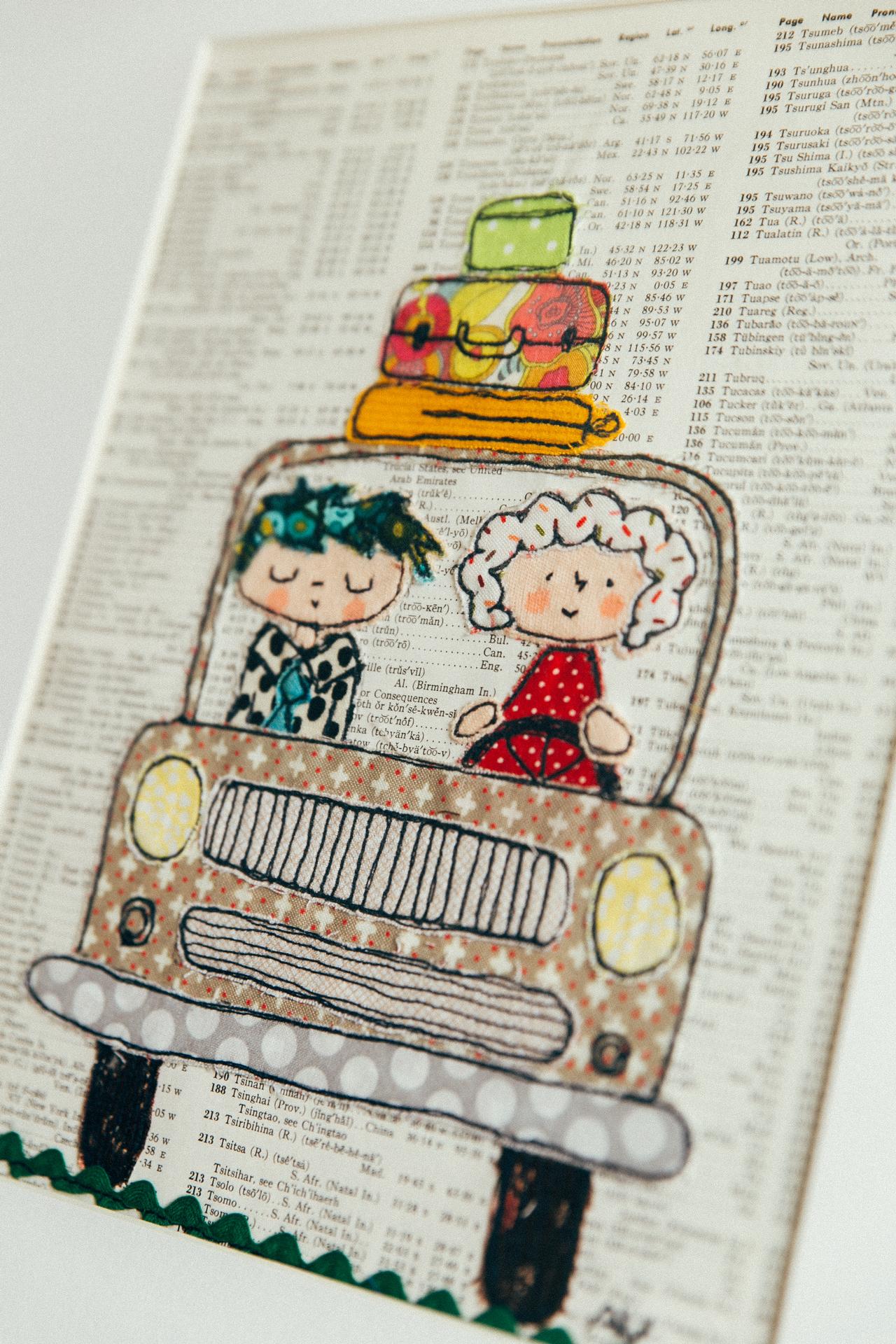 Along with dollmaking, I enjoy using my sewing machine to create 2D works of free-motion embroidery, or thread sketch - this uses smaller dollmaking scraps and vintage books.