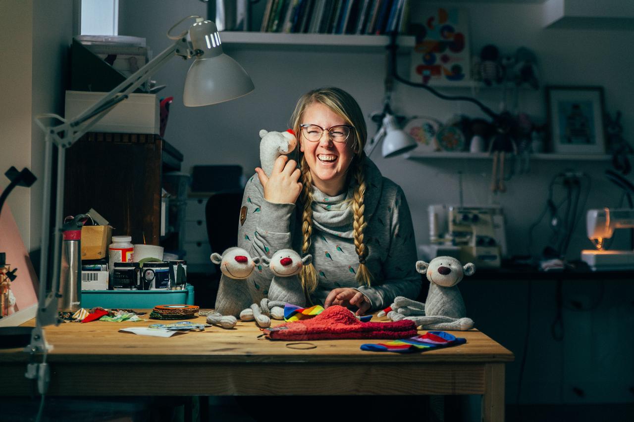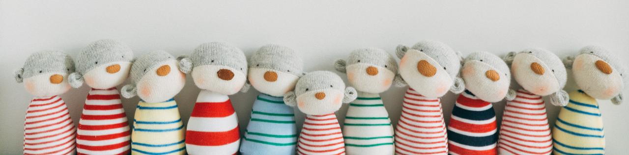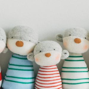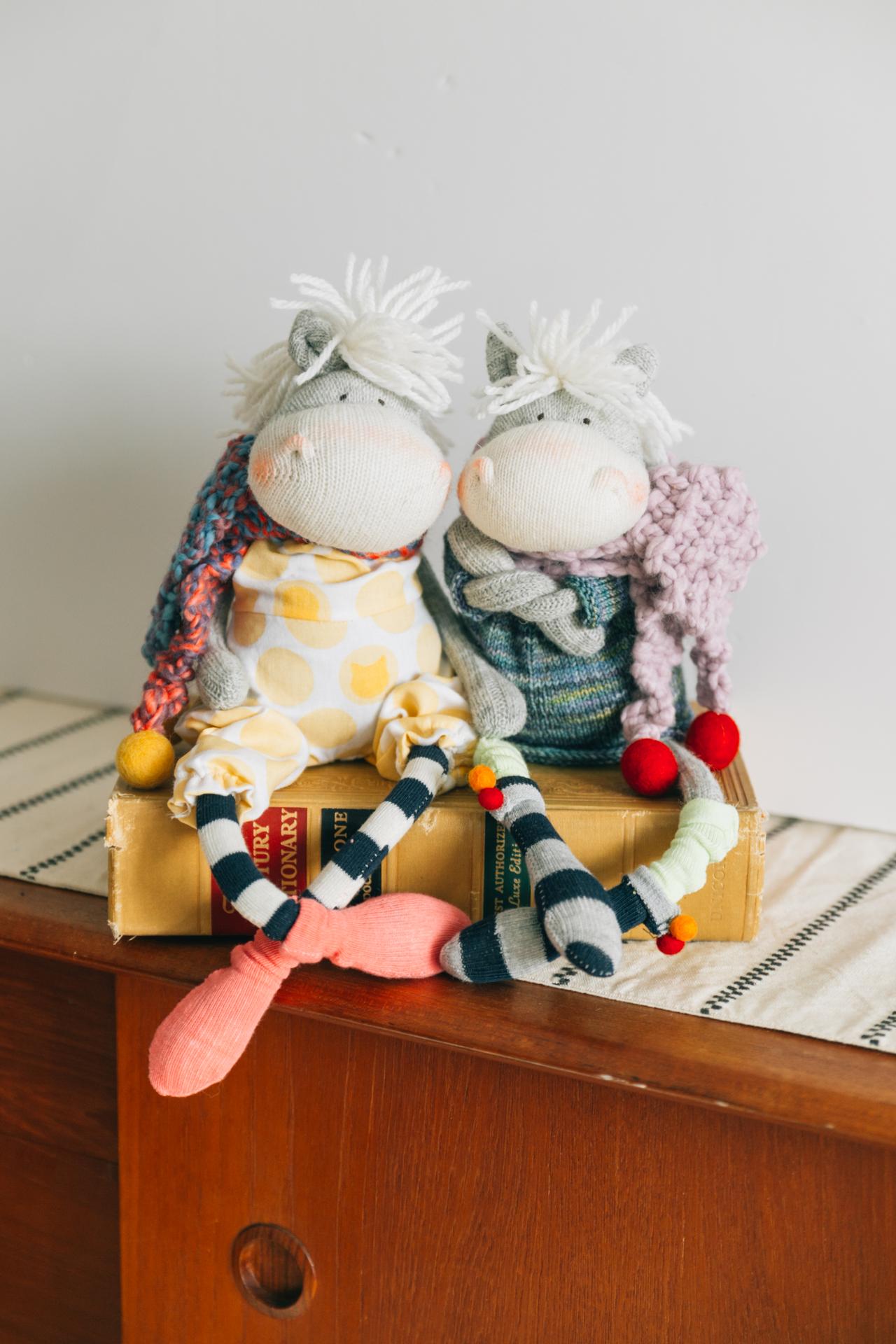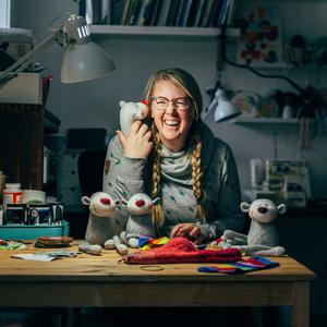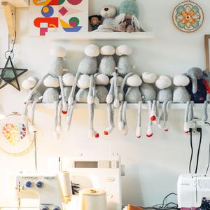 I've been experimenting with fabrics and textures since I was able to use a sewing machine. In 2013, I started exploring dollmaking, with a mission to create a non-creepy sock monkey, and hopes to use some of the smaller scraps of fabric I have accumulated over the years. Around this time, I had the opportunity to work with Mollie Makes, a british crafting magazine, to develop an easy make-along sock doll.