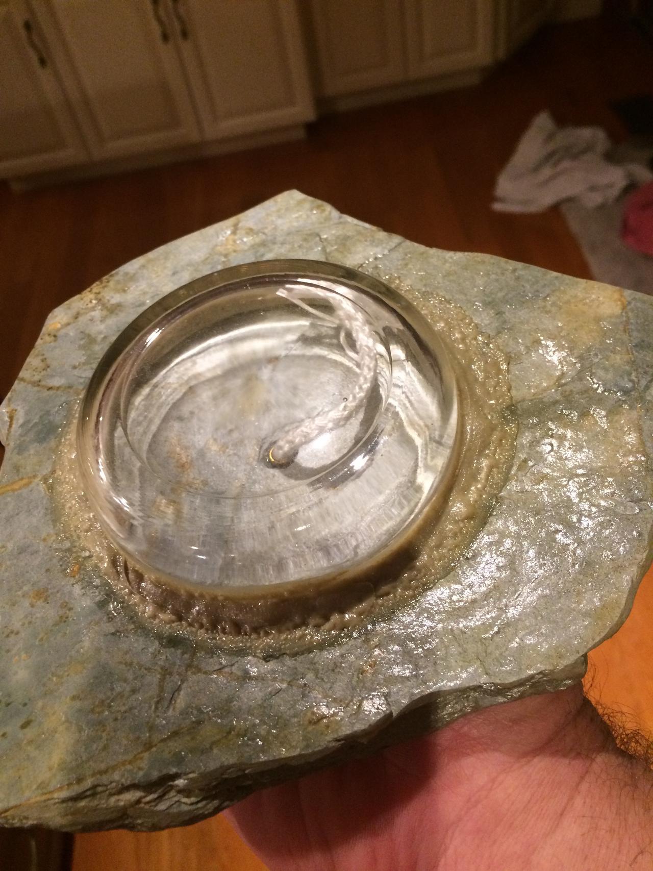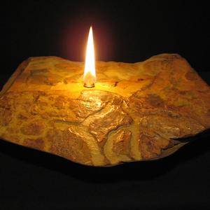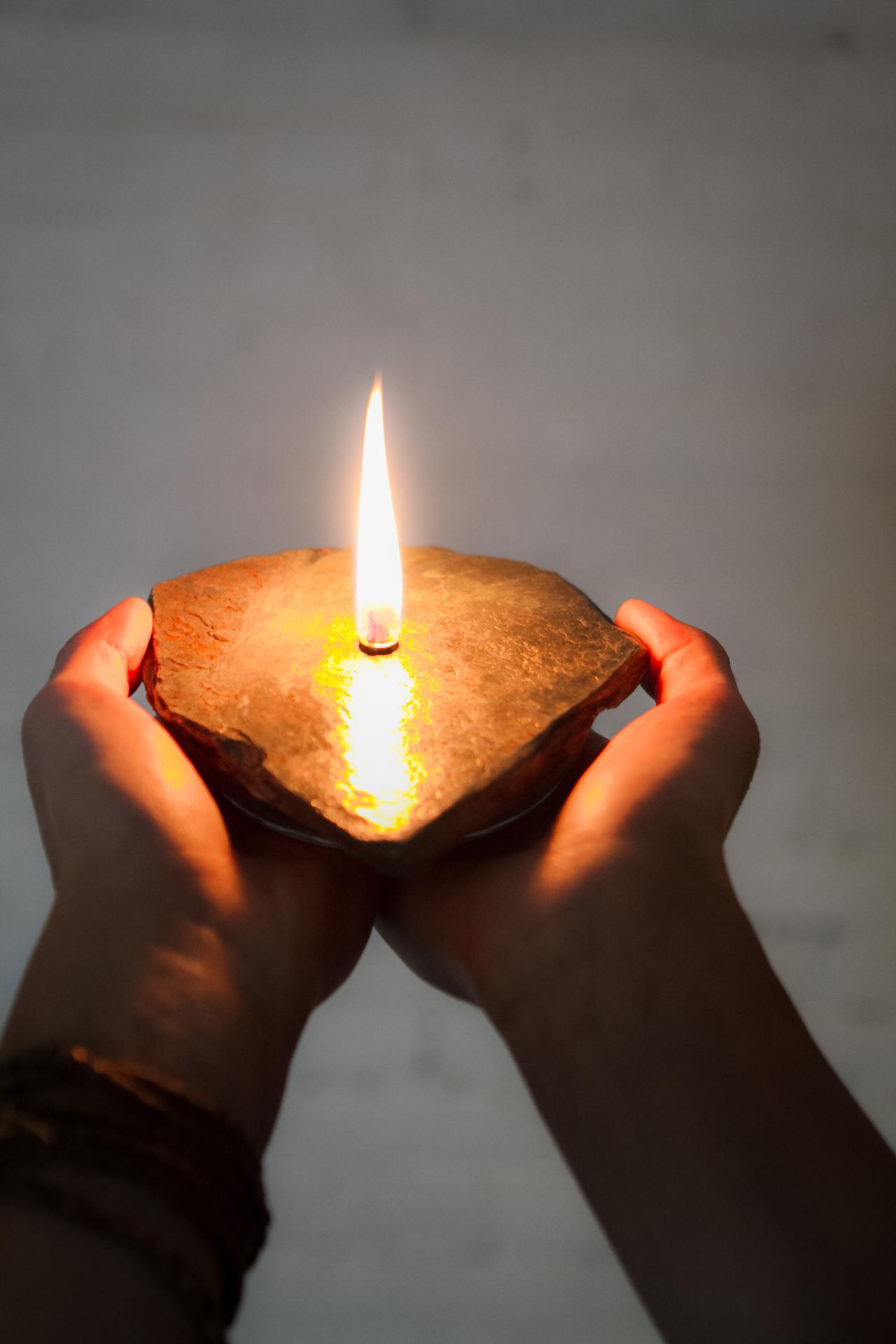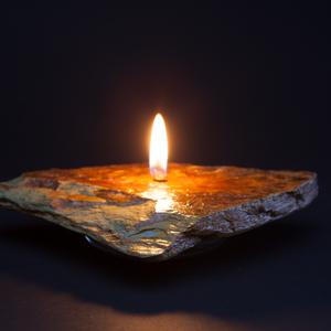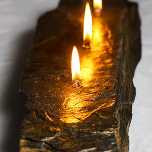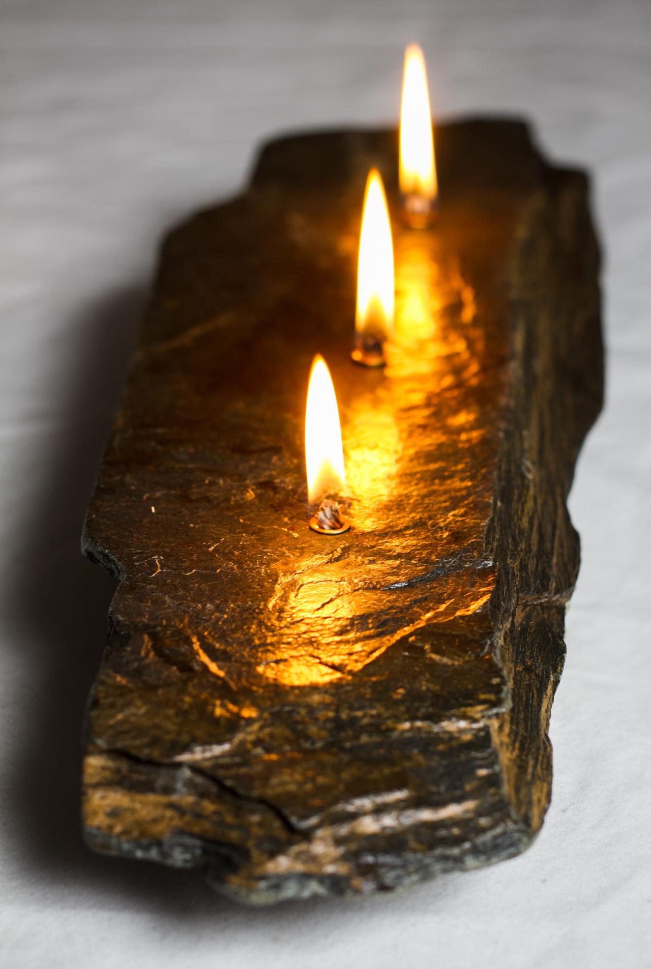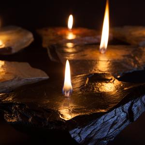 I use unique shaped natural rock and bond a reservoir to the base for the liquid paraffin fuel. The burn time for the candles is 4-6 hours and a refilling kit is included. 90% of my time is spent looking for the rock.