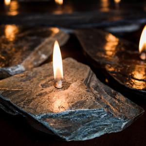 Rock candles by Rocks Afire were inspired by the flickering light of a campfire on summer nights at Georgian Bay.
